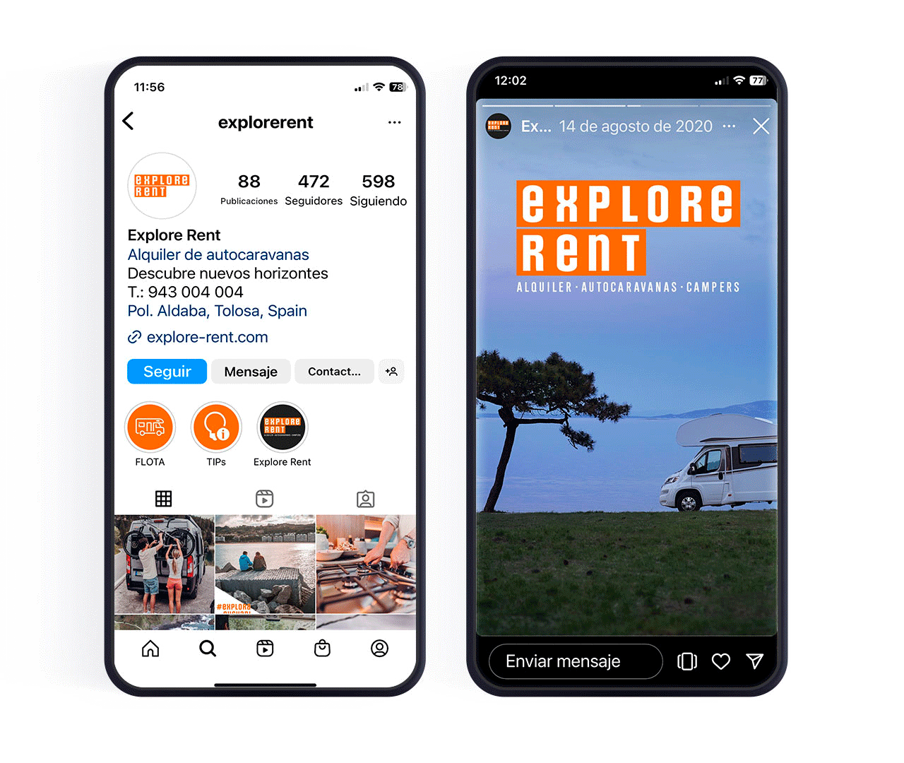 Explore Rent es una empresa de alquiler de autocaravanas situada en el corazón de Gipuzkoa. Para el lanzamiento de la empresa diseñamos su imagen corporativa, web y fotos y videos de los vehículos en preciosos paisajes de nuestro entorno.