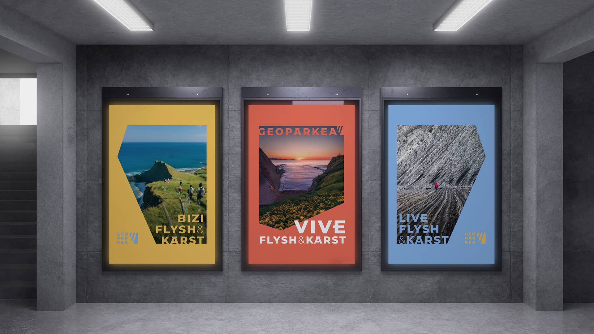 Geoparkea es un lugar de referencia en el turismo de Euskadi y un polo de atracción para geólogos de todo el mundo. En Dosges hemos llevado a cabo el rediseño de su marca. Una marca que ha conseguido legibilidad, impacto, y una gran versatilidad en las aplicaciones.