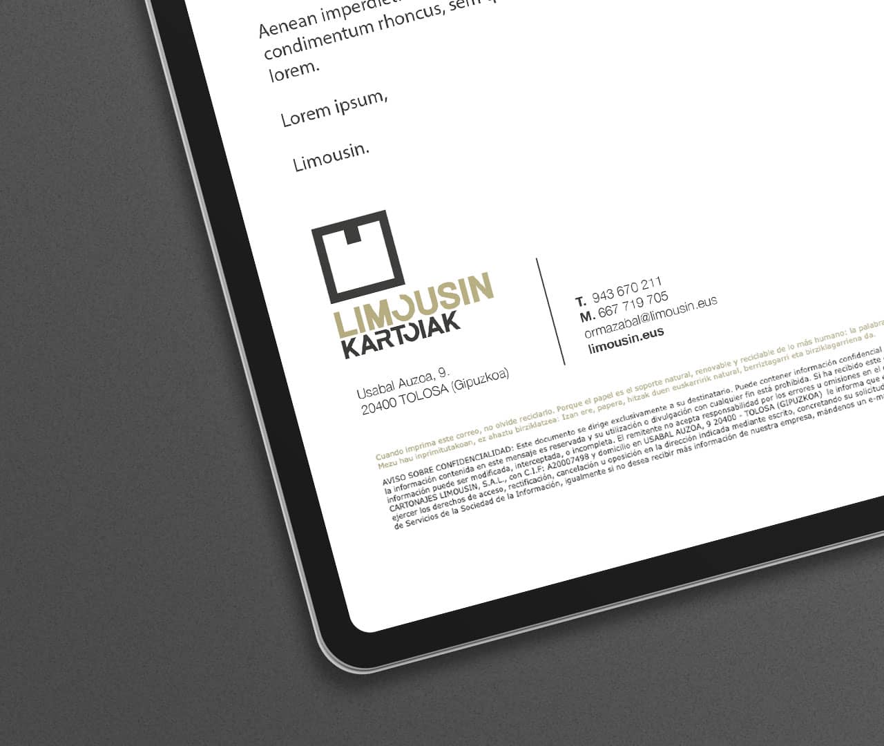 Esta empresa centenaria de Tolosa nos pidió un cambio de imagen. Una marca que transmitiera la solidez de esta fábrica y su capacidad para alinearse con el mercado. Y así surgió la nueva marca de Limousin kartoiak. Sobria, versátil y duradera. 3 características que también definen el producto que fabrican, el cartón.